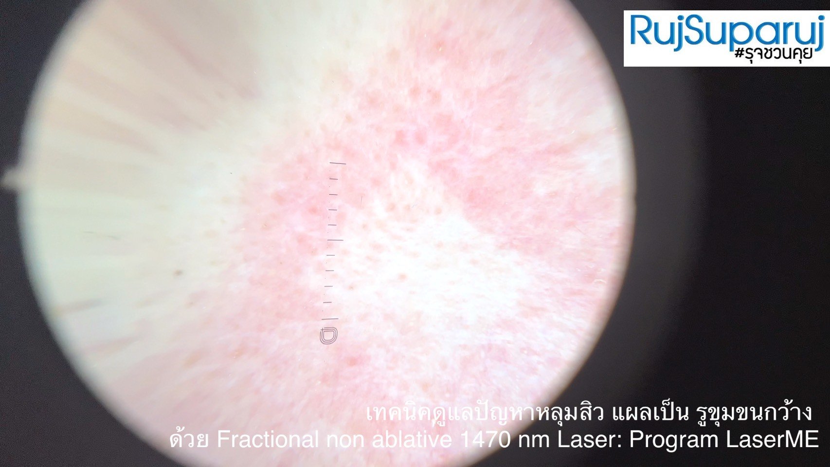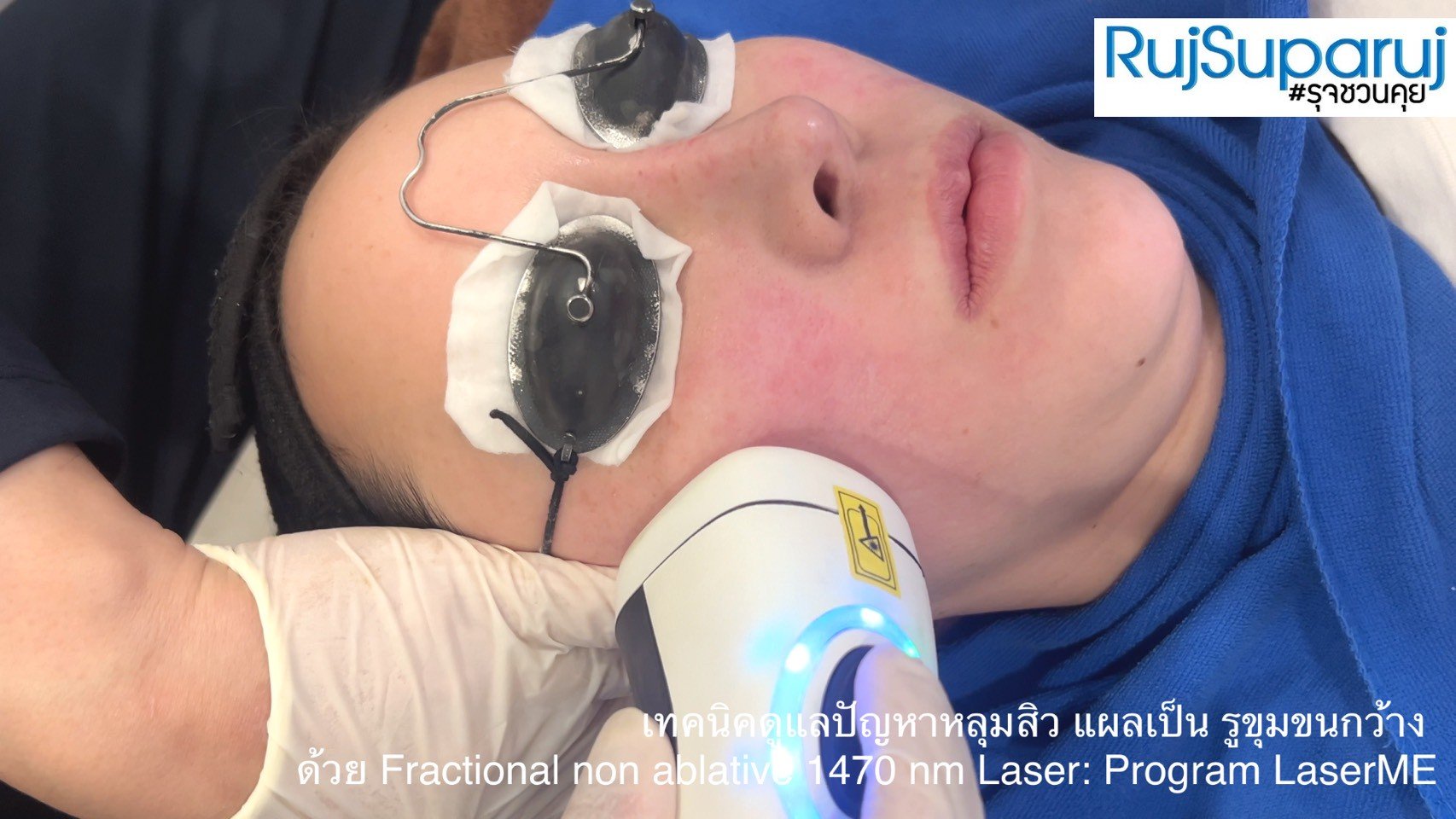 เทคนิคดูแลปัญหาหลุมสิว แผลเป็น รูขุมขนกว้าง ด้วย Fractional non ablative 1470 nm Laser: Program LaserME