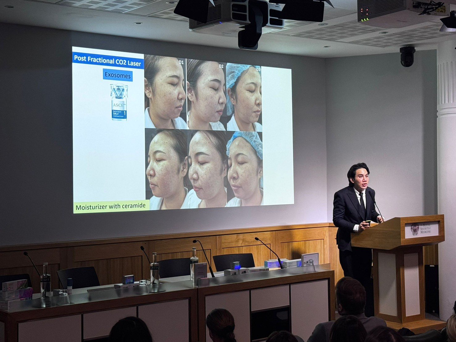 Lecture on Skin and Hair Rejuvenation Using Exosome Therapy at the Royal Society of Medicine, London, United Kingdom