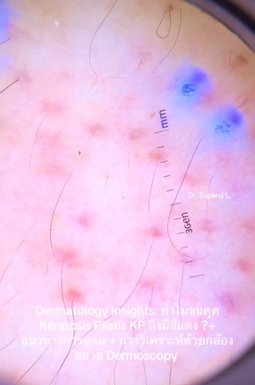 "ทำไมขนคุด Keratosis Pilaris (KP) ถึงมีสีแดง? + แนวทางการดูแล + วิเคราะห์ผิวกล้องส่องขยาย Dermoscopy " วันนี้หมอจะพามาวิเคราะห์ด้วยกล้องขยายผิวหนังหรือ Dermoscopy กันครับ